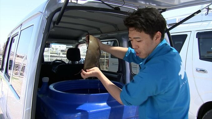 丸亀市の手島沖で偶然、網にかかったという個体、漁師は35年で初めての経験だったといいます。