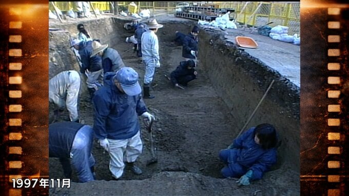 変わって1998年。7年後の岡山国体の主会場の候補に挙がっていた岡山市いずみ町の総合グラウンドで発掘調査が始まったニュース。発掘調査は、国体の主会場として総合グラウンド周辺の改修が可能なのかどうかを判断するためのものだったようです。総合グラウンドでの発掘調査は、前の年の11月に陸上競技場周辺の10か所でも行われました。