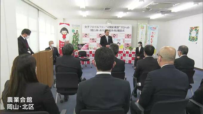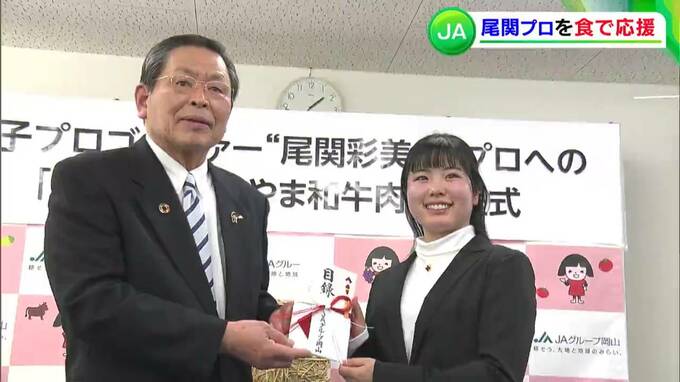 岡山県出身の女子プロゴルファー・尾関彩美悠選手を応援しようと、JAグループ岡山は、岡山県産の米や牛肉などを贈りました。