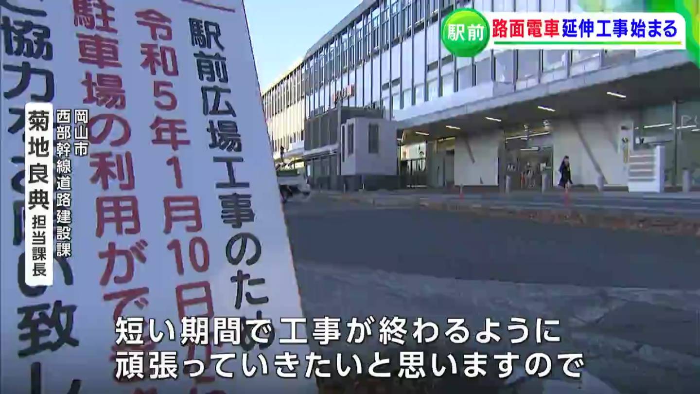 JR岡山駅東口の駅前広場に路面電車を乗り入れる工事が、きょう(10日)から本格的に始まりました。この影響で約2年間、岡山駅東口の平面駐車場が利用できなくなります。