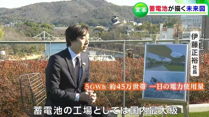 日本のエネルギー問題解決の一助となるプロジェクトが、2023年に岡山県玉野市で本格的に始動します。それは電気をためる「蓄電池の巨大工場」です。計画を進める企業のトップを招き、話を聞きました。
