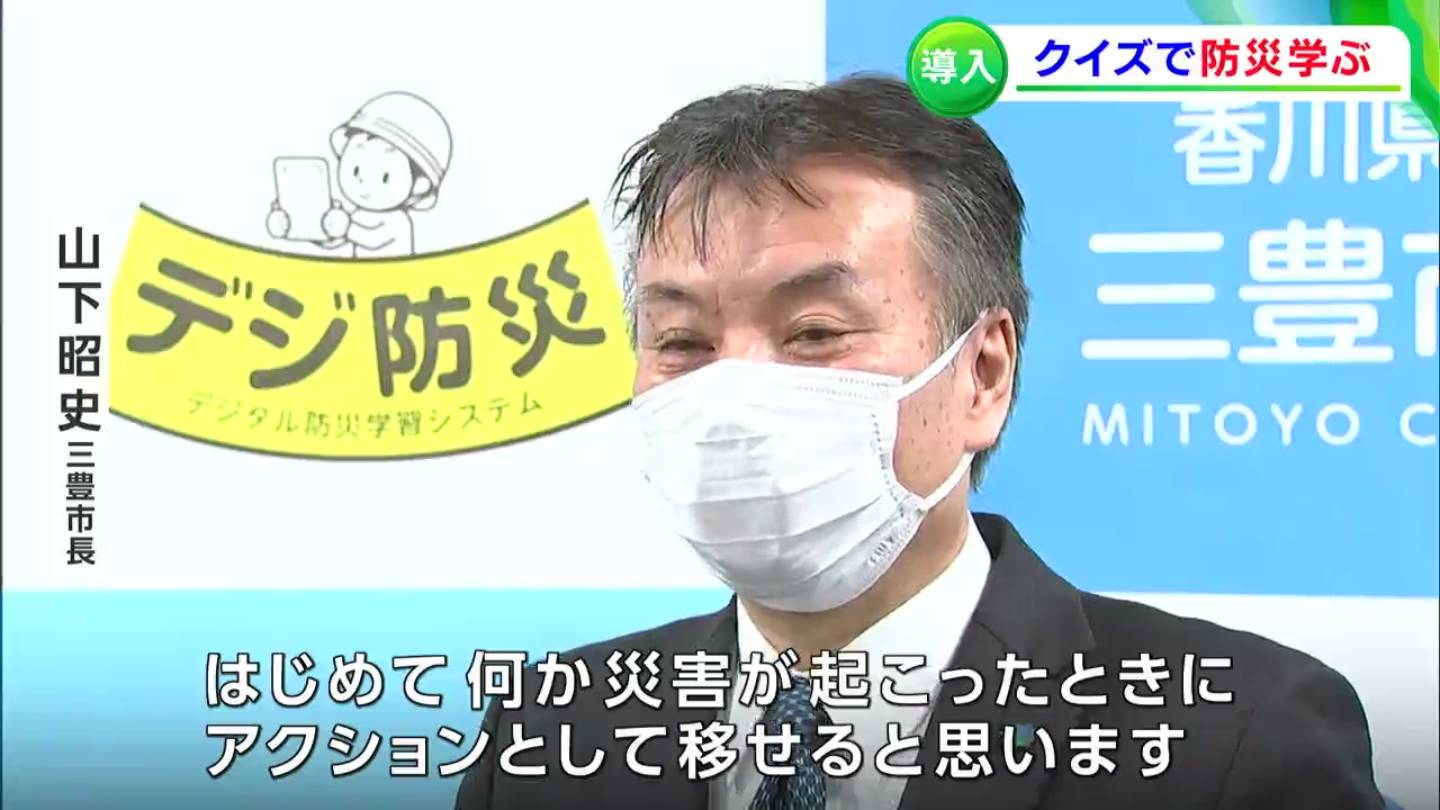 小・中学生が「1回10分のクイズ形式」で防災の知識を学ぶことができる、「デジタル防災学習システム」が、全国で初めて三豊市に導入されました。