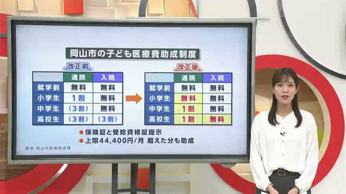 岡山市の拡充が遅れた背景には、人口の多い自治体では、財源の確保が難しいという側面がありました。今回、政令市としては全国で4番目となる小学生の通院費無料化を目指している岡山市。国政でも子育て支援とその負担が注目を浴びるなか、来年1月からの運用を目指しています。