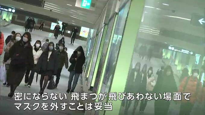 政府対策本部では先ほど、来月13日からのマスク着用の方針について正式決定しました。指針についても示していて全員の着席が可能な新幹線や高速バスなどではマスクを外すことを容認する一方で通勤ラッシュの混雑した電車やバスでは着用を推奨しています。そして、学校などでは4月1日から「マスクの着用を求めないこと」を基本とした一方で、「着脱を強いることがないようにする」ことともしています。