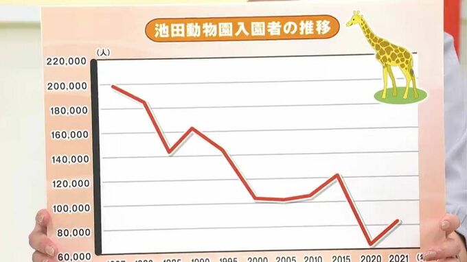 岡山の誇りともいえる池田動物園ですが、様々な問題も抱えています。40年ほど前には、年間15万人以上だった入園者は減少し、新型コロナもあって近年は年間10万人を切っています。