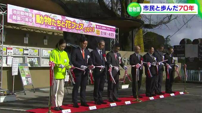 池田動物園で開かれたオープニングセレモニーには、イベントを主催する有志団体の関係者など約40人が参加しました。「命の尊さを感じてもらいたい」と、昨年から開かれている「動物たちと花フェス」は、開園70年に合わせて期間と花を昨年の倍にし、園内で約3万本の花と動物を楽しむことができます。