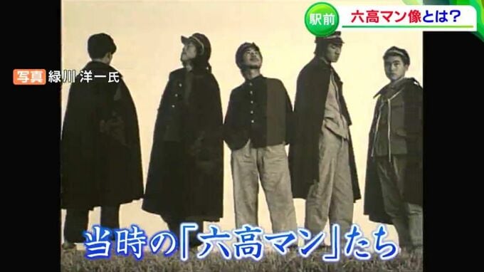 「工事に伴い、桃太郎像は南側に数メートル動かすことが決まっていますが、一方で、『移設させる先が決まっていない像』があることをご存じでしょうか。それがこの六高マン像です」