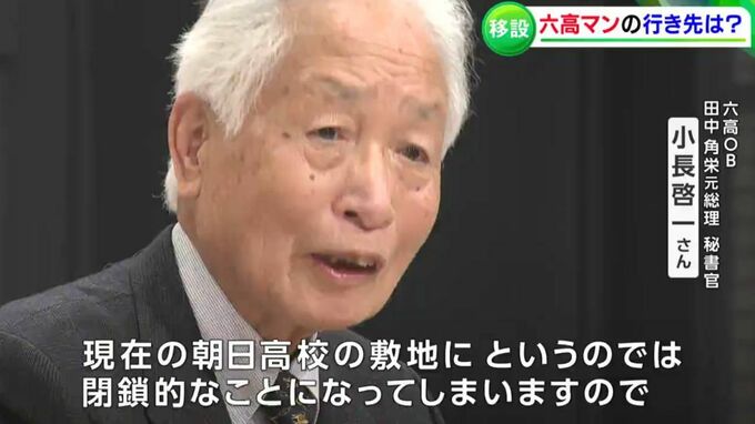 (六高OB 田中角栄元総理 秘書官 小長啓一さん)「現在の朝日高校の敷地のどこかにというのでは、閉鎖的なことになってしまいますので、岡山のどこか目立つところ。例えば岡山城が臨めるようなところで、岡山城に行ったついでにちゃんとそこが見れると」