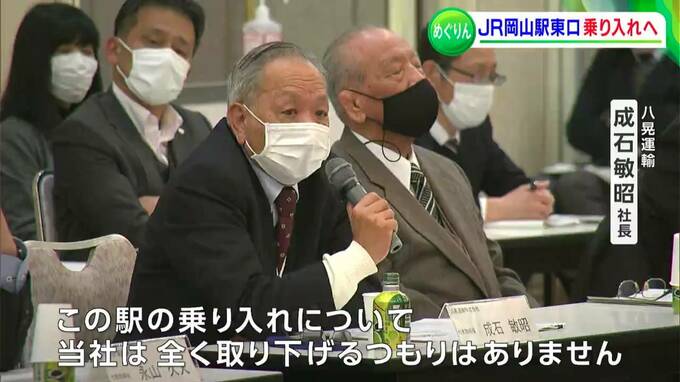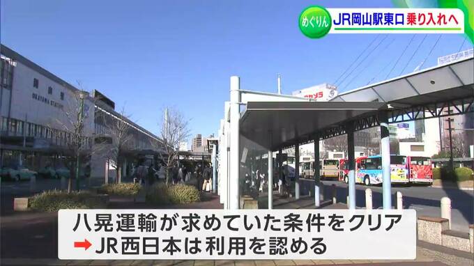これまで岡山市は、新規参入した八晃運輸やその他のバス業者とともに、公共交通の維持を模索してきましたが、JR岡山駅東口バスターミナルに「めぐりん」が加われば競争の激化するなどとして、一部のバス会社から懸念の声が上がっていました。