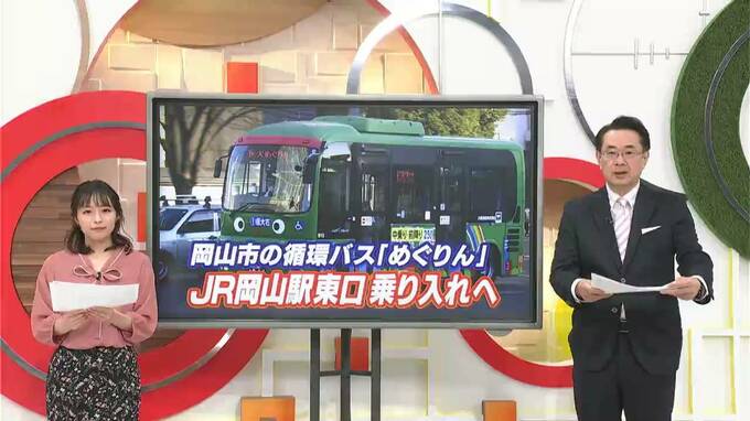 今週、岡山市内を走る循環バス「めぐりん」の、JR岡山駅東口バスターミナルへの乗り入れが発表されました。
