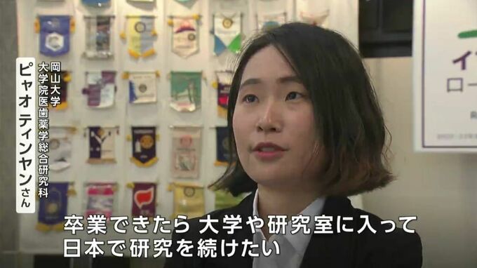 このうち中国出身のピャオティンヤンさんが岡山大学大学院で取り組む、「口の中の歯肉にできるガンについての研究」は、発生のメカニズム解明につながり得るとして評価されました。