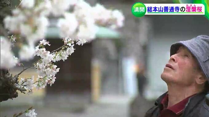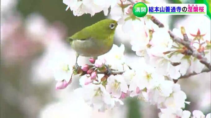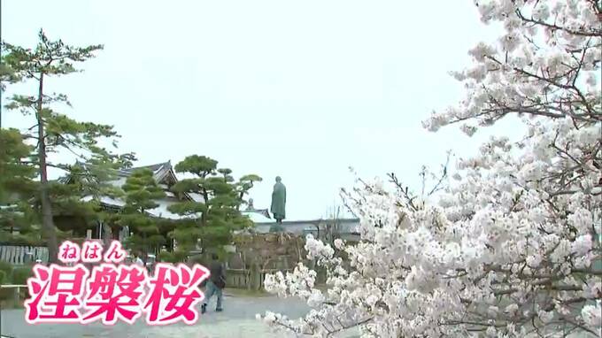 一方、香川県では涅槃桜が満開です。四国霊場75番札所の総本山善通寺にあるミョウショウジザクラは、釈迦が入滅した時期に満開を迎えることから、涅槃桜と呼ばれています。