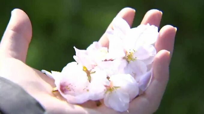 (近くの住民)「鳥が蜜を吸って落としている花びらを拾った。朝の光が当たっているサクラが一番好きです」