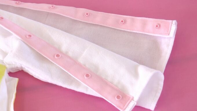 贈られたのは、その名も「点滴用パジャマ」です。肩や脇にスナップボタンがついていて、袖などを大きく開けられるようになっています。