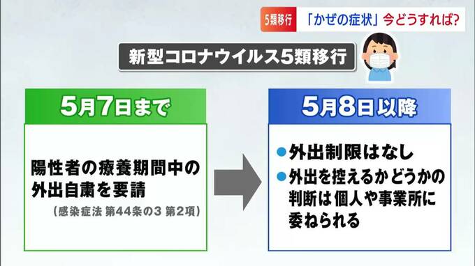 これまでは、陽性者の外出については『自粛』が要請されていましたが、外出制限がなくなり、外出を控えるかどうかは『個人や事業所の判断』に委ねられるようになりました。