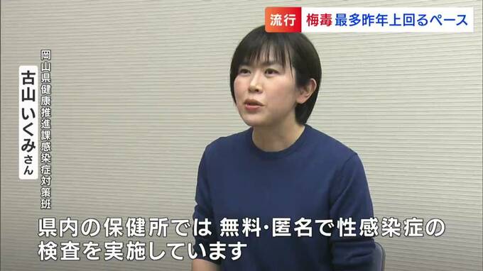全国的に、若者を中心に感染が急増している梅毒。岡山県では今年、感染者が最多だった昨年を上回るペースで増加しています。自分や大切な人を守るために私達ができることとは?