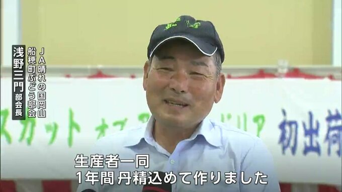 (JA晴の国岡山船穂町ぶどう部会 浅野三門部会長)「生産者一同、一年間丹精込めて作りました。味なり香りなりを十分楽しんでいただけたらなあ、と思っています」