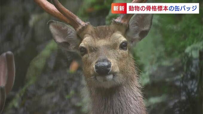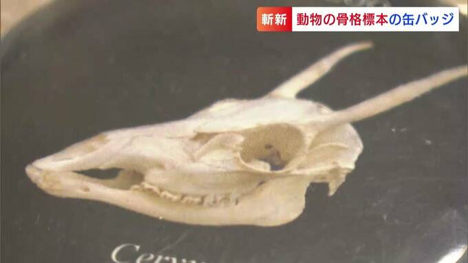 全部で7種類ある動物の缶バッジ=「骨格標本缶バッジ」は、どれも池田動物園での飼育歴がある動物たちばかりです。例えば、シカの骨を缶バッジで見てみると・・・