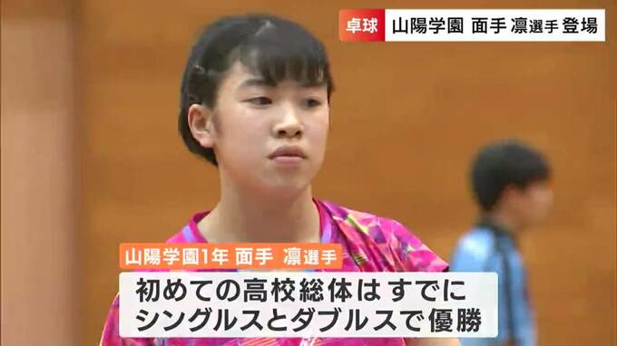 岡山県高校総体の卓球競技・学校対抗が総社市の“きびじアリーナ”で行われました。昨年、中学日本一に輝いた山陽学園高校の面手 凛(めんで・りん)選手も出場しました。
