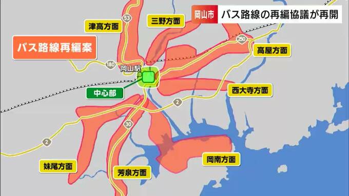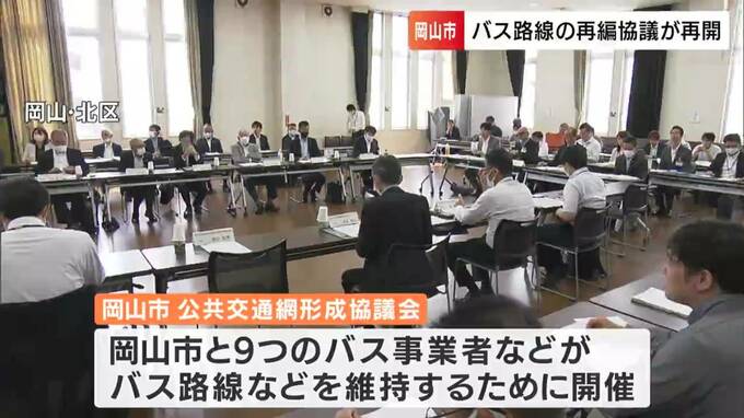 新型コロナの影響で協議が中断していた、岡山市内のバス路線再編などを話し合う協議会が約2年4か月ぶりに再開しました。これまで、再編を巡り意見の対立が繰り返されてきた協議会は一転、コロナ禍を経て、きょう(5日)は競争より協力を求める声が目立ちました。