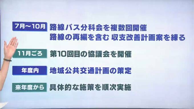そして今後のスケジュールですが7月から10月までに事業者や学識経験者らでバス分科会を複数回開催。再編を含む具体的な収支改善計画を練り、11月の次の協議会でこの案を話し合うということです。岡山市としては年度中に計画を策定し、来年度から実行に移したいということです。