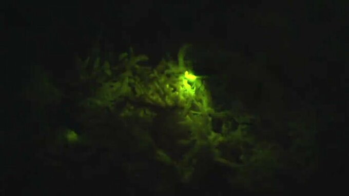 幻想的な淡い光を放つ源氏ボタル。鑑賞会が開かれているのは宗家源吉兆庵の銀座本店です。