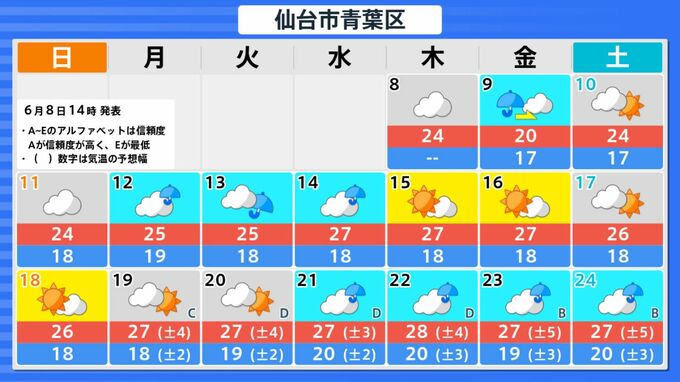 皆さんのお住いのエリアの16日間予想は、市区町村別に「TBS NEWS DIGアプリ」で確認することができます。