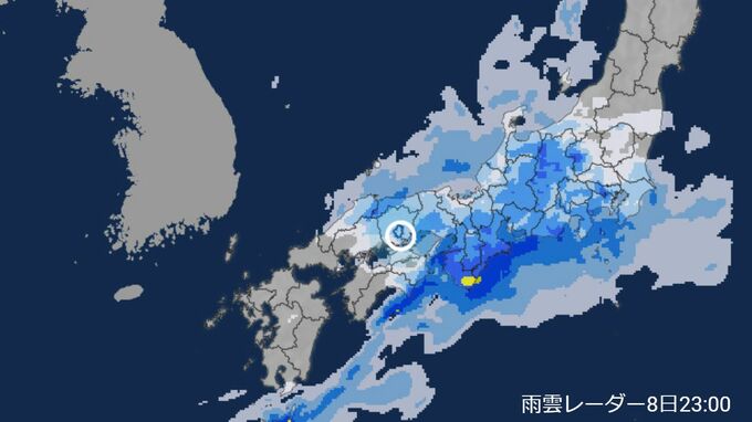 このため、西日本ではあす(9日)にかけて、東日本の太平洋側では今夜(8日)遅くからあす(9日)昼前にかけて、雷を伴った非常に激しい雨や激しい雨が降り、大雨となる所があるでしょう。