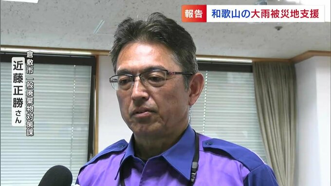 職員はきのう(12日)まで、現地で物資の支援や災害ごみの片付けにあたりました。今回被災した自治体の中には5年前の西日本豪雨の際に倉敷市の支援に当たった海南市も含まれています。