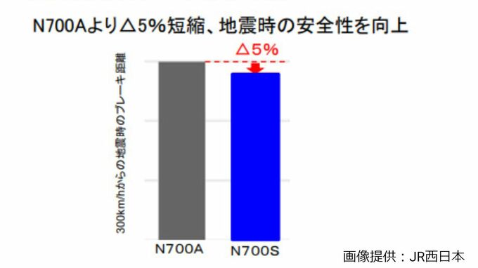 また「N700A」からの改造についても、N700Sと同様にブレーキ距離を5%短縮します。こちらは2024年度~2026年度にかけて、40編成を対象に行う予定です。
