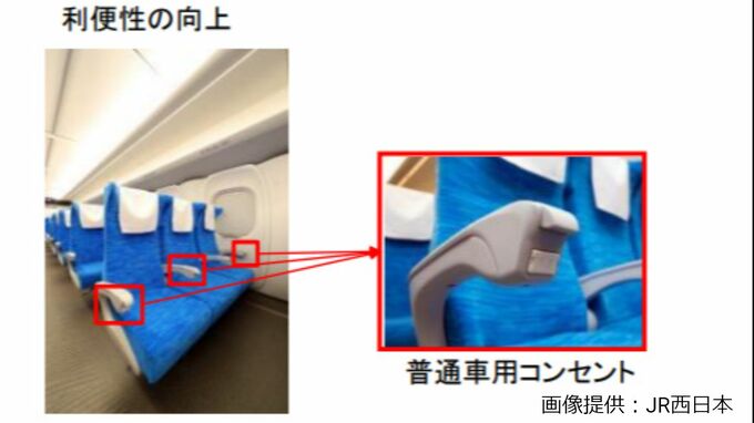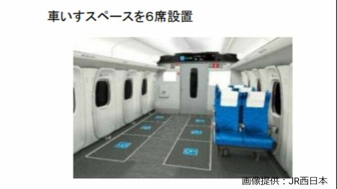 さらに全席にモバイル用コンセントを設置、また車いすスペースを6席設置します。新たな「N700S」は、今年8月ごろに1編成、来年2月ごろに1編成の計2編成が投入される予定です。
