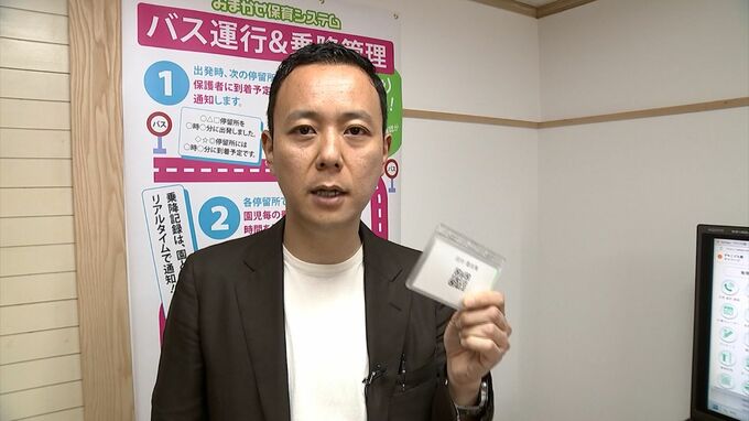 (リポート・佐藤大祐記者)「園児はまず、このカードを機械にかざし、バスに乗り込みます。すると、スマートフォンに乗り込んだ園児の名前と乗車時刻が記録されます」
