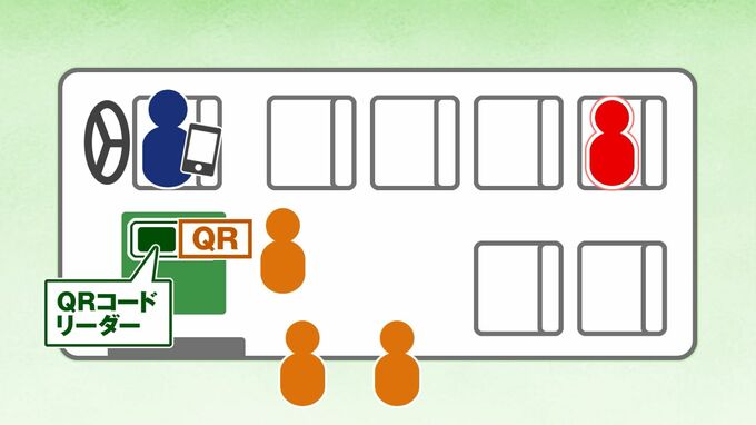 岡山市の企業が開発した新たなシステム。スマートフォンとQRコードリーダー、それに園児の情報を埋め込んだQRコード付きのカードを使い、バスの乗り降りの状況を把握するというものです。その仕組みは…