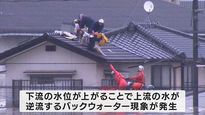 これは、下流の水位が上がることで上流の水が逆流するバックウオーター現象が起きたためです。