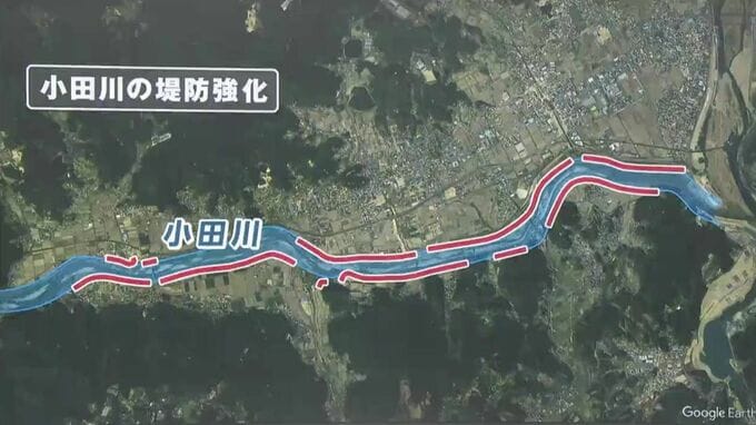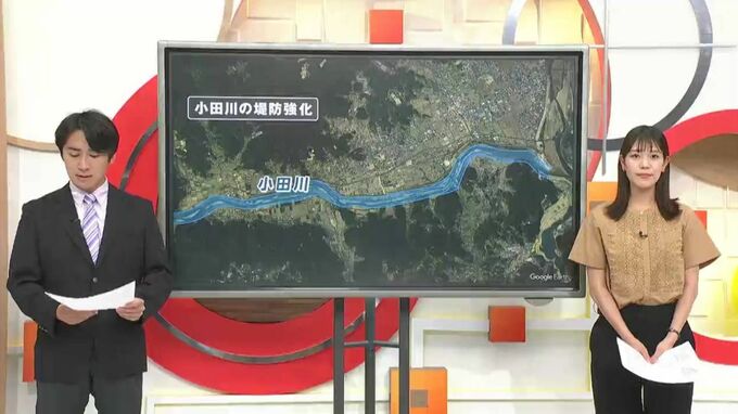 【スタジオ】真備地区の治水事業ですが、付け替え工事のほかにも小田川の堤防強化が昨年3月に一部の区間を除き完成していて今後、未整備の場所についても準備が整い次第実施されるということです。