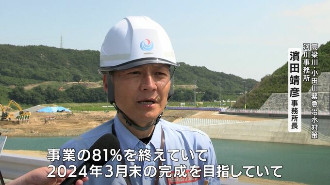(高梁川・小田川緊急治水対策河川事務所 濱田靖彦事務所長)「現在、事業の81%を終えていて、2024年3月末の完成を目指して現在順調に進んでいます」