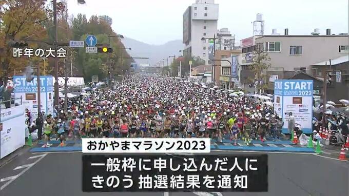 11月に行われる「おかやまマラソン2023」の一般枠の抽選結果がきのう(20日)通知されました。倍率はフルマラソンで1.46倍でした。