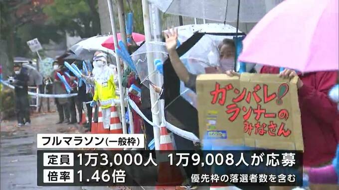 きのう(20日)、一般枠に申し込んだ人にメールやはがきで抽選結果が通知されました。フルマラソンには定員の1万3000人に対し、昨年より1600人ほど多い1万9008人が申し込み、倍率は1.46倍でした。