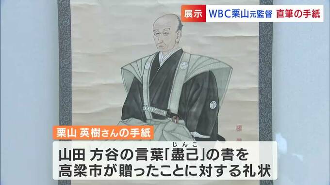 WBC日本代表の監督を務めた栗山英樹さんから届いた手紙の展示が岡山県高梁市で始まりました。WBCに向けて贈った書に対する礼状です。