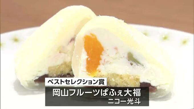 モモやシャインマスカットなど、地元の果物をふんだんに使った「岡山フルーツぱふぇ大福」です。今年の最も優れた商品に選ばれました。