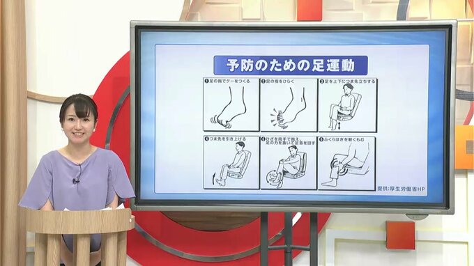 血液の循環をよくするためこまめに水分を補給し「定期的に身体を動かすこと」が大切です。