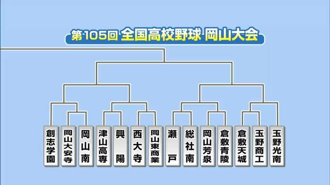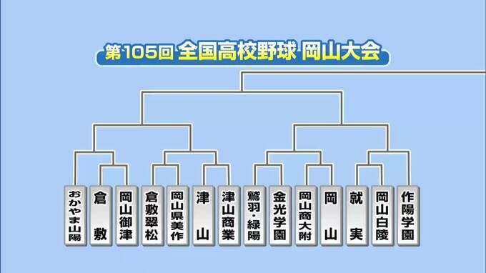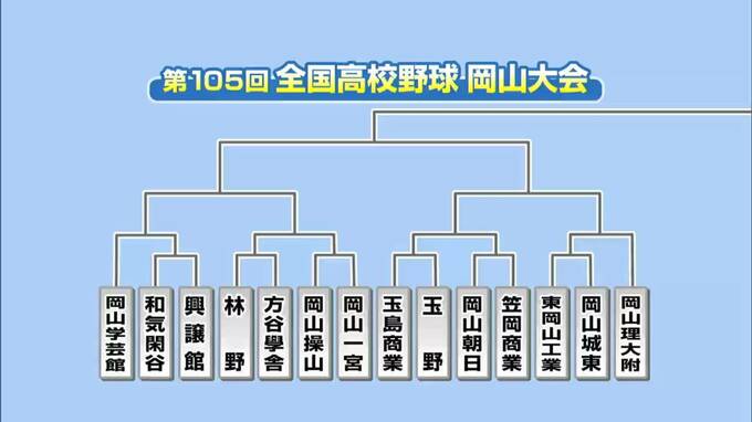 春の岡山県大会で優勝し、4年ぶりの夏の甲子園を目指す岡山学芸館は、2年連続の開幕試合となった和気閑谷と、興譲館との試合の勝者と初戦です。強豪・岡山理大附属と同じブロックになっています。