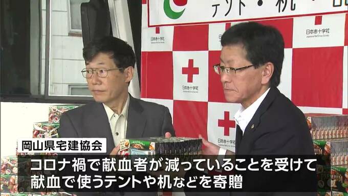 コロナ禍で献血をする人が減っています。献血への協力者を増やそうと岡山県宅建協会が県の赤十字血液センターにテントなどを寄贈しました。