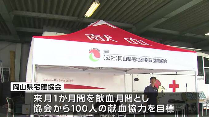 (岡山県宅建協会 山上健一 会長)「コロナ禍で献血の血液が足りないということを聞いて、公益社団法人として何か協力出来ないかということで」