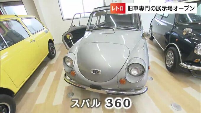 6月1日にオープンした岡山市東区の展示場には、約40台の旧車が展示されています。