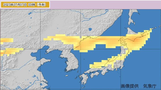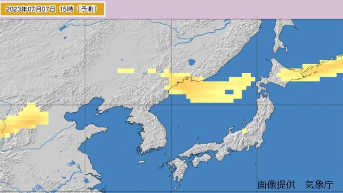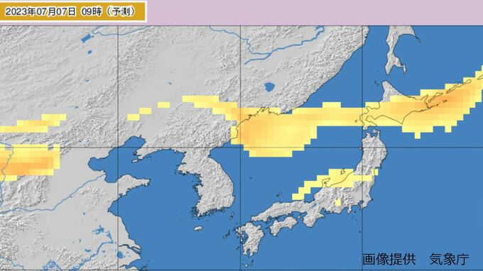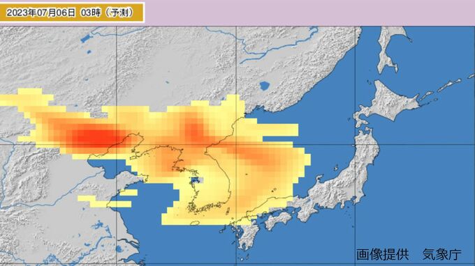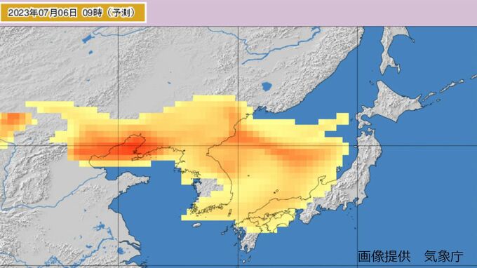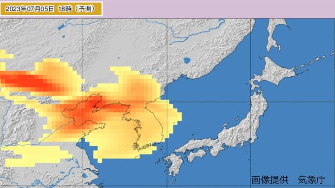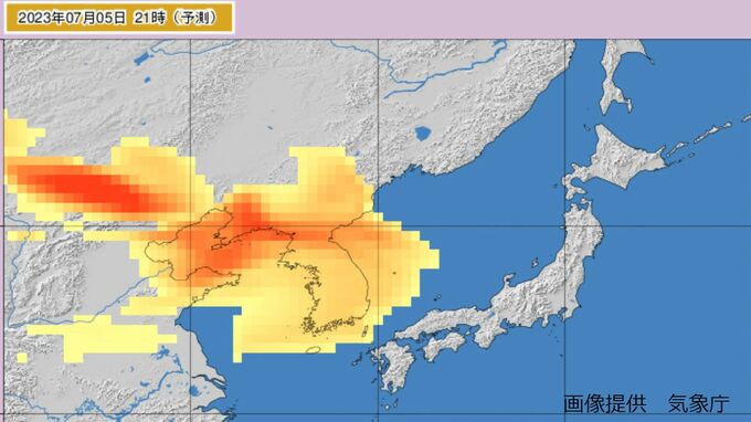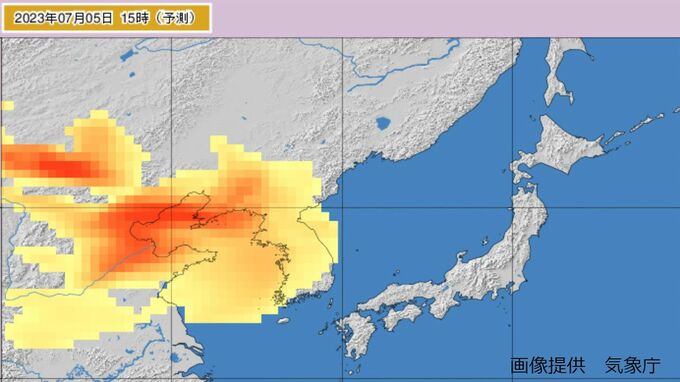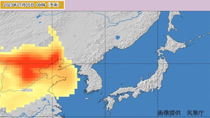 気象庁の黄砂観測実況図によりますと、黄砂は5日午前6時現在、中国の華北地方・山東半島付近まで確認されていて、あす(6日)からあさって(7日)午前中にかけて、日本列島の広い範囲を通過する見込みです。