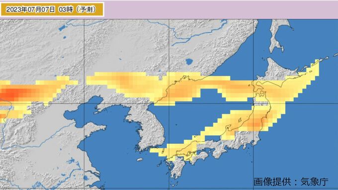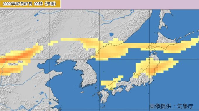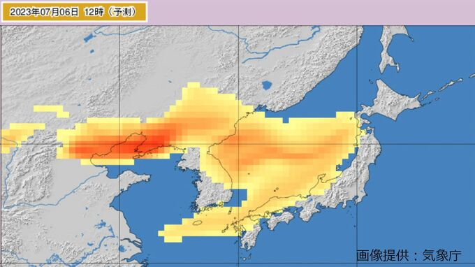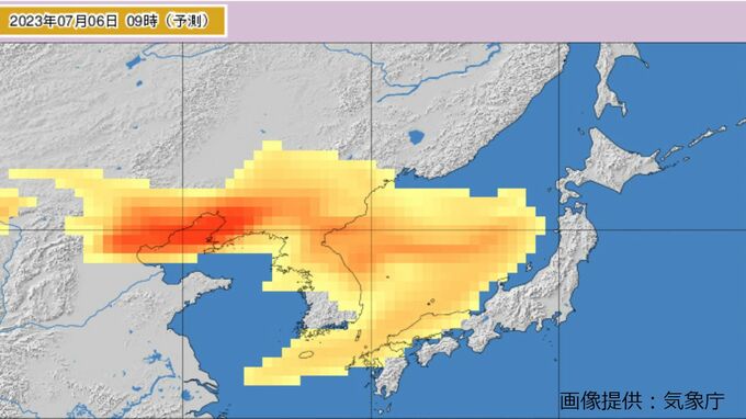 気象庁の黄砂観測実況図によりますと、黄砂はきょう(6日)午前9時には九州北部~中国地方に飛来する見込みで、その後あす(7日)午前中にかけて、日本列島の広い範囲を通過する見込みです。