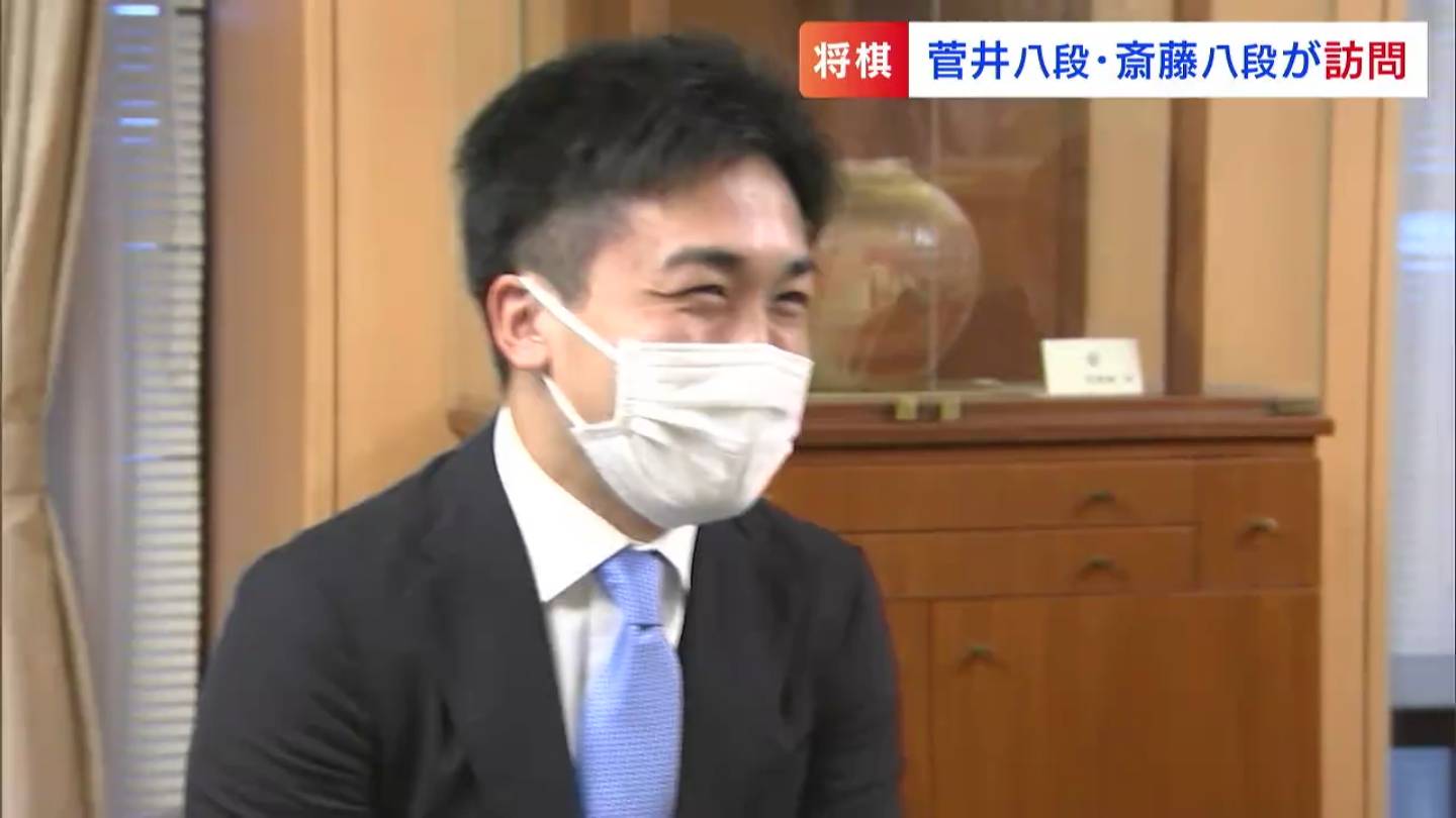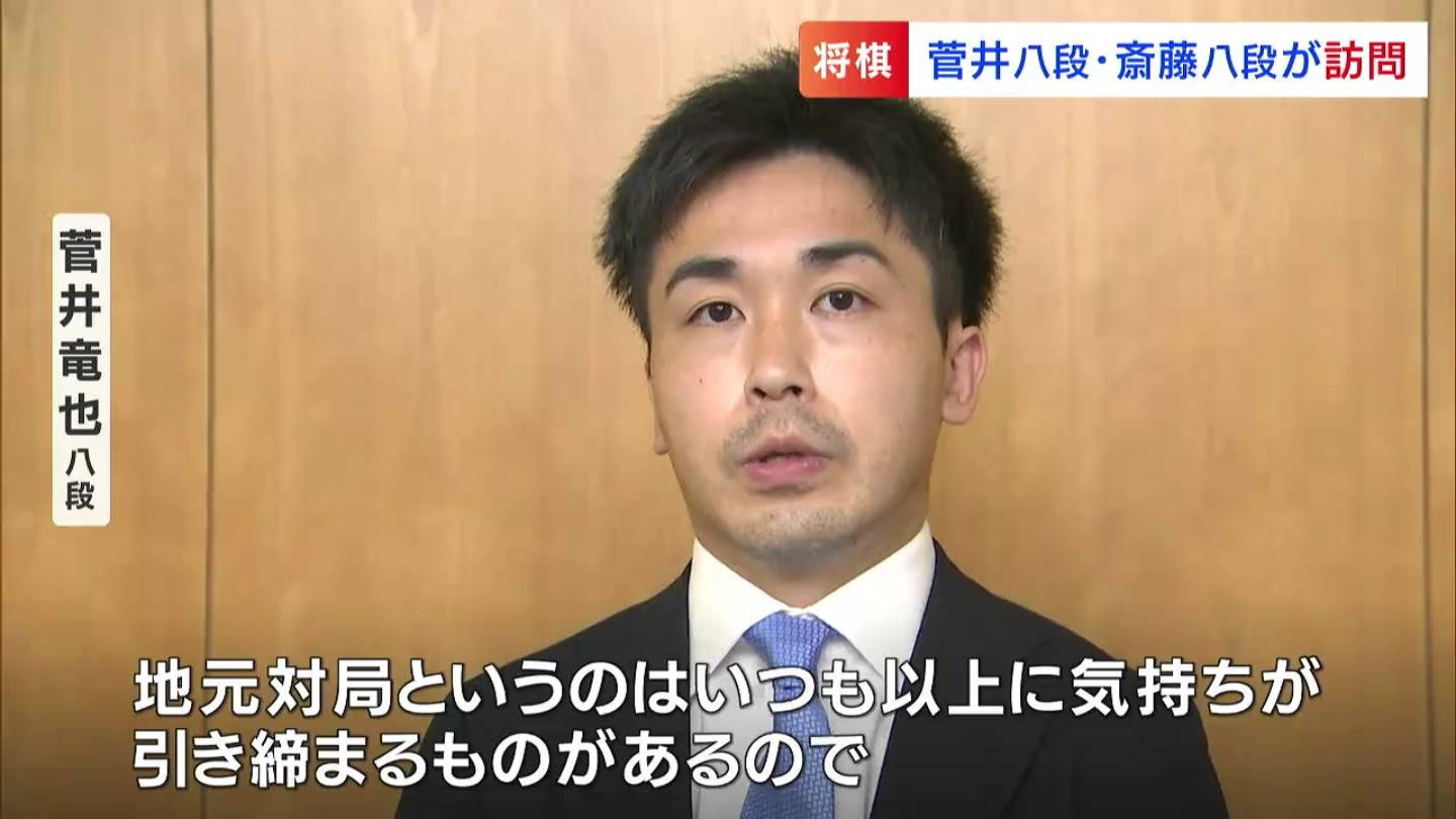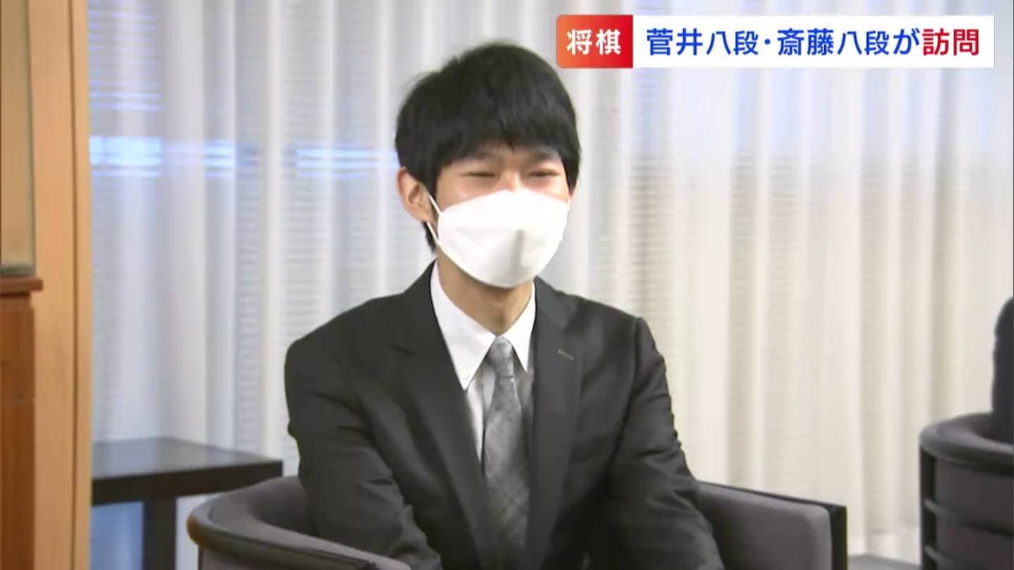岡山県庁を訪れたのは、菅井竜也八段と斎藤慎太郎八段です。
