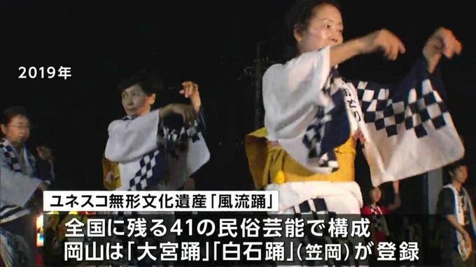 「大宮踊」は古くから真庭市蒜山地域に伝わる盆踊りで、岡山県では笠岡市の「白石踊」とともにユネスコ無形文化遺産「風流踊」に選ばれました。