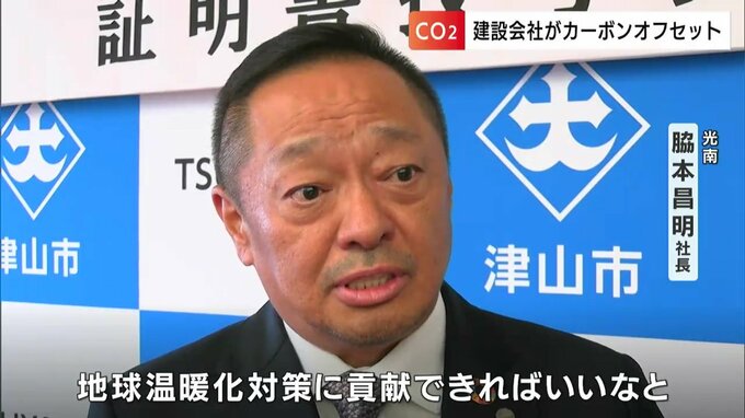岡山県倉敷市に本社を構える建設会社「光南」が、温暖化対策に取り組もうと、温室効果ガスを別の取り組みで埋め合わせる「カーボンオフセット」を行いました。